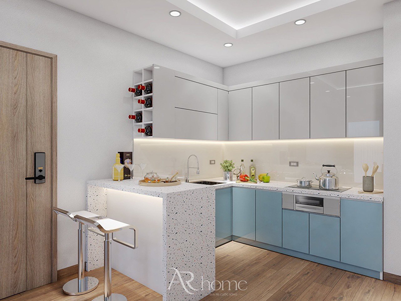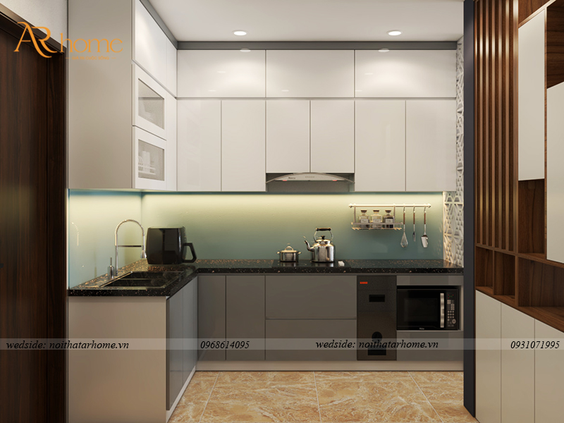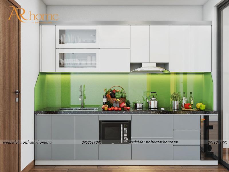 Ngược lại, nếu căn bếp có phần khiêm tốn về diện tích, bạn nên chọn những tông màu sáng để tạo cảm giác thoáng đãng, sáng sủa hơn.Hiện nay, các tông màu trung tính như xám, ghi, trắng, be,… cũng rất được ưa chuộng trong thi công tủ bếp An Cường acrylic khi có thể thiết kế theo cả phong cách cổ điển lẫn hiện đại.