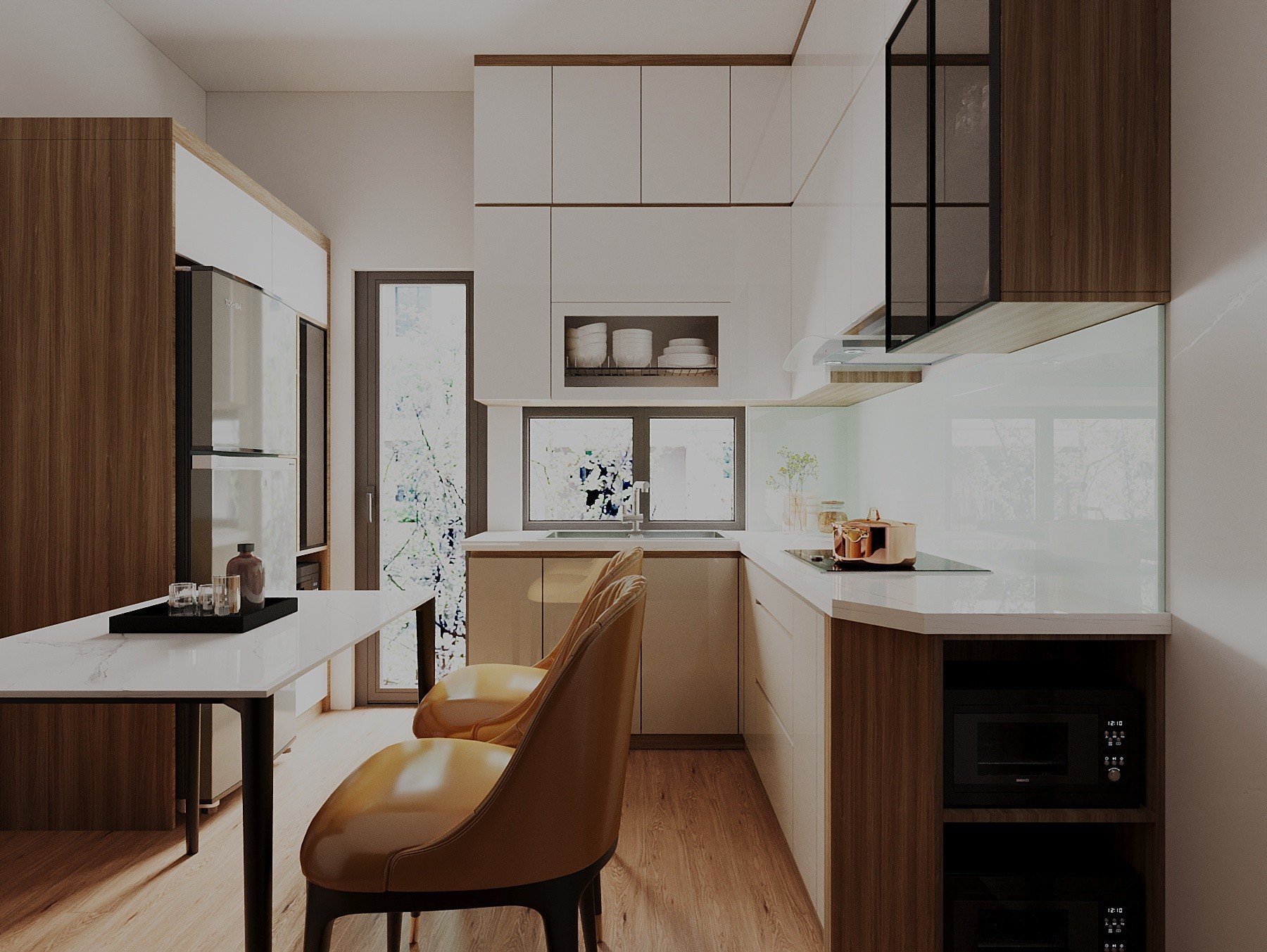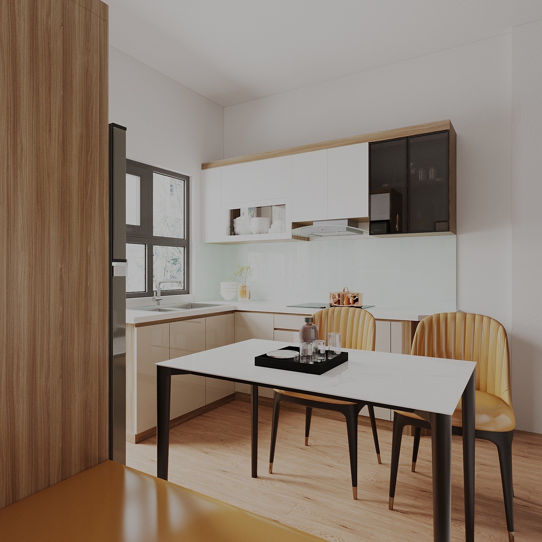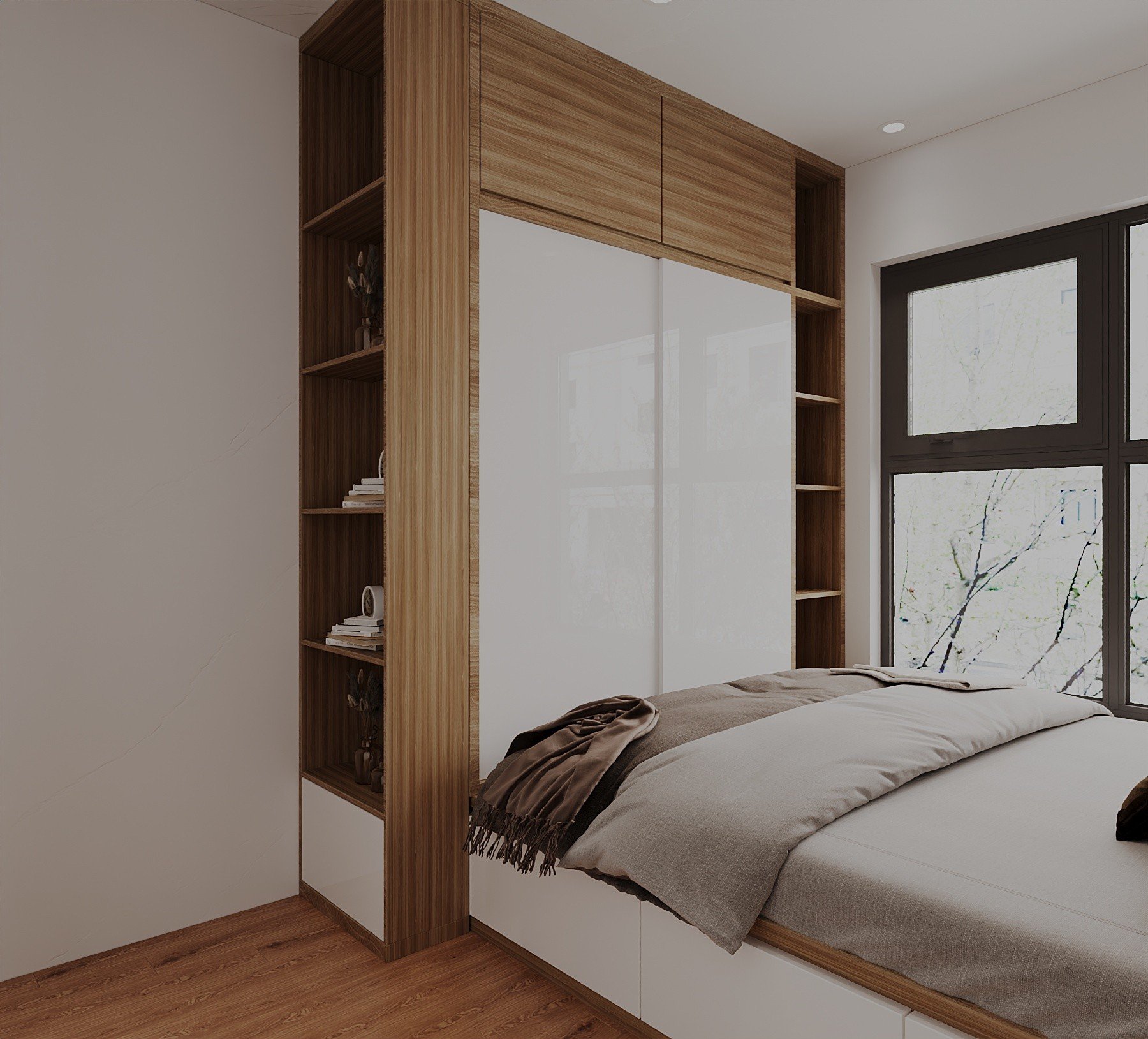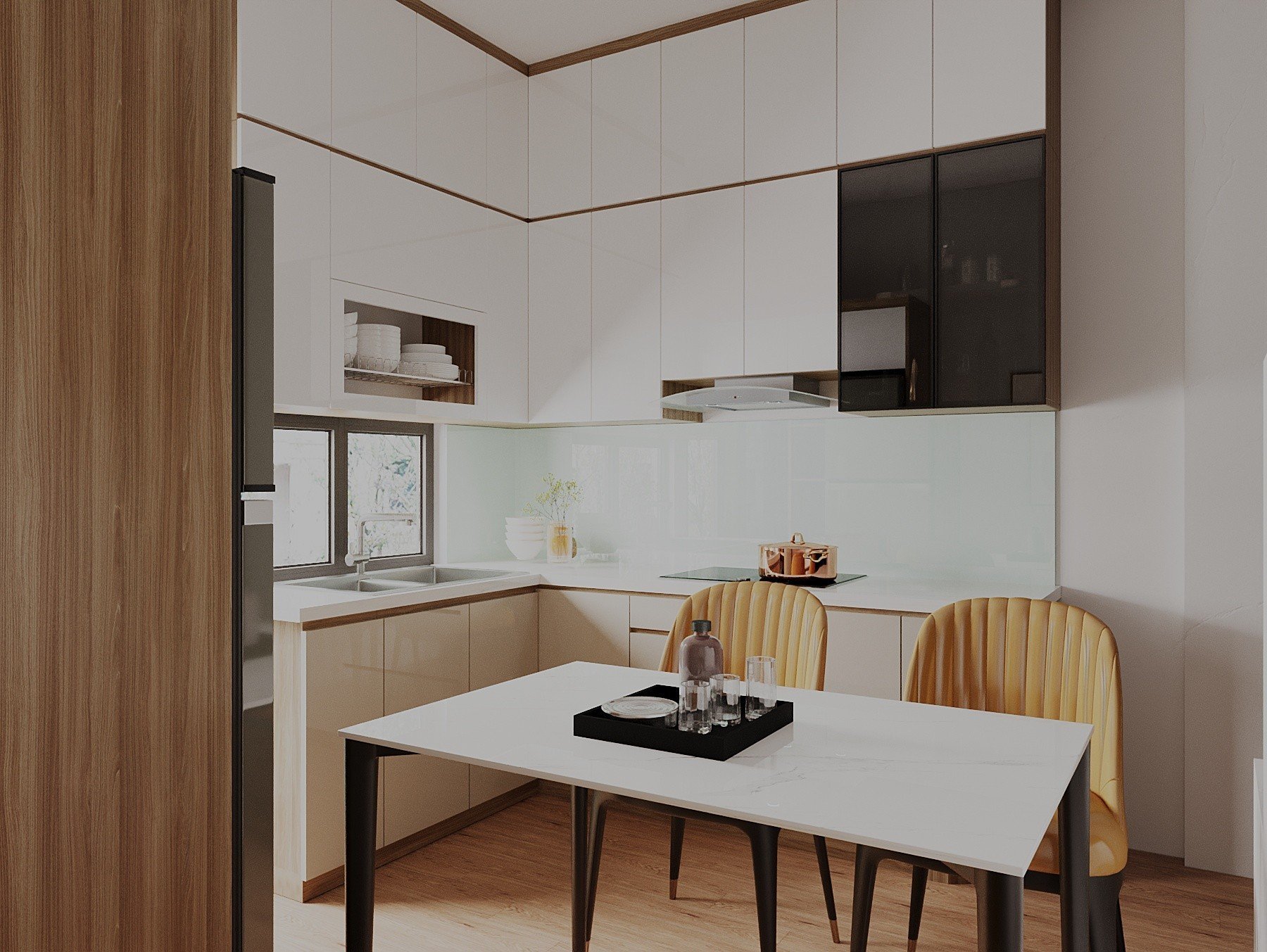Tông màu chủ đạo: Vân Gỗ Kết Hợp Cánh Acrylic