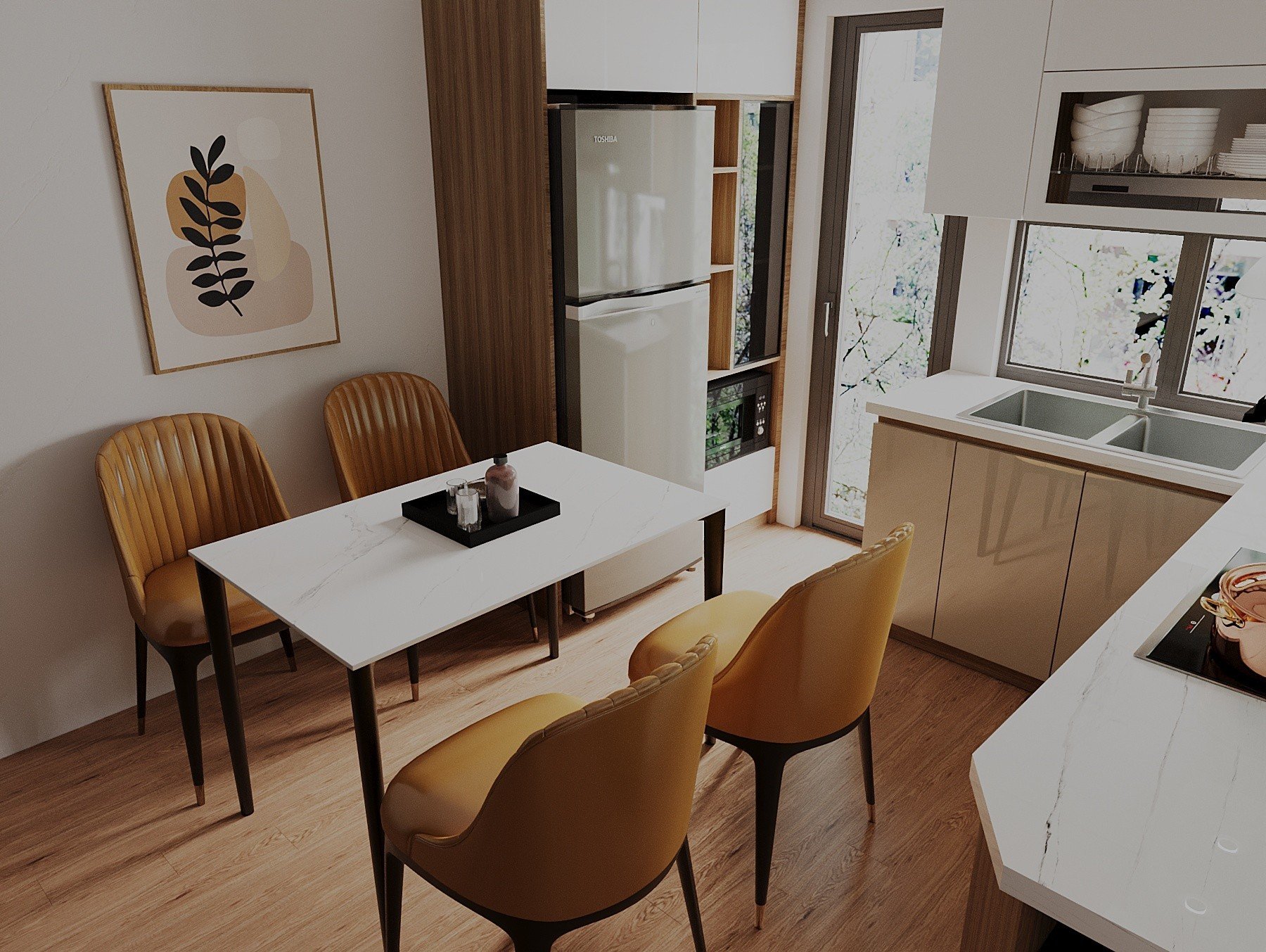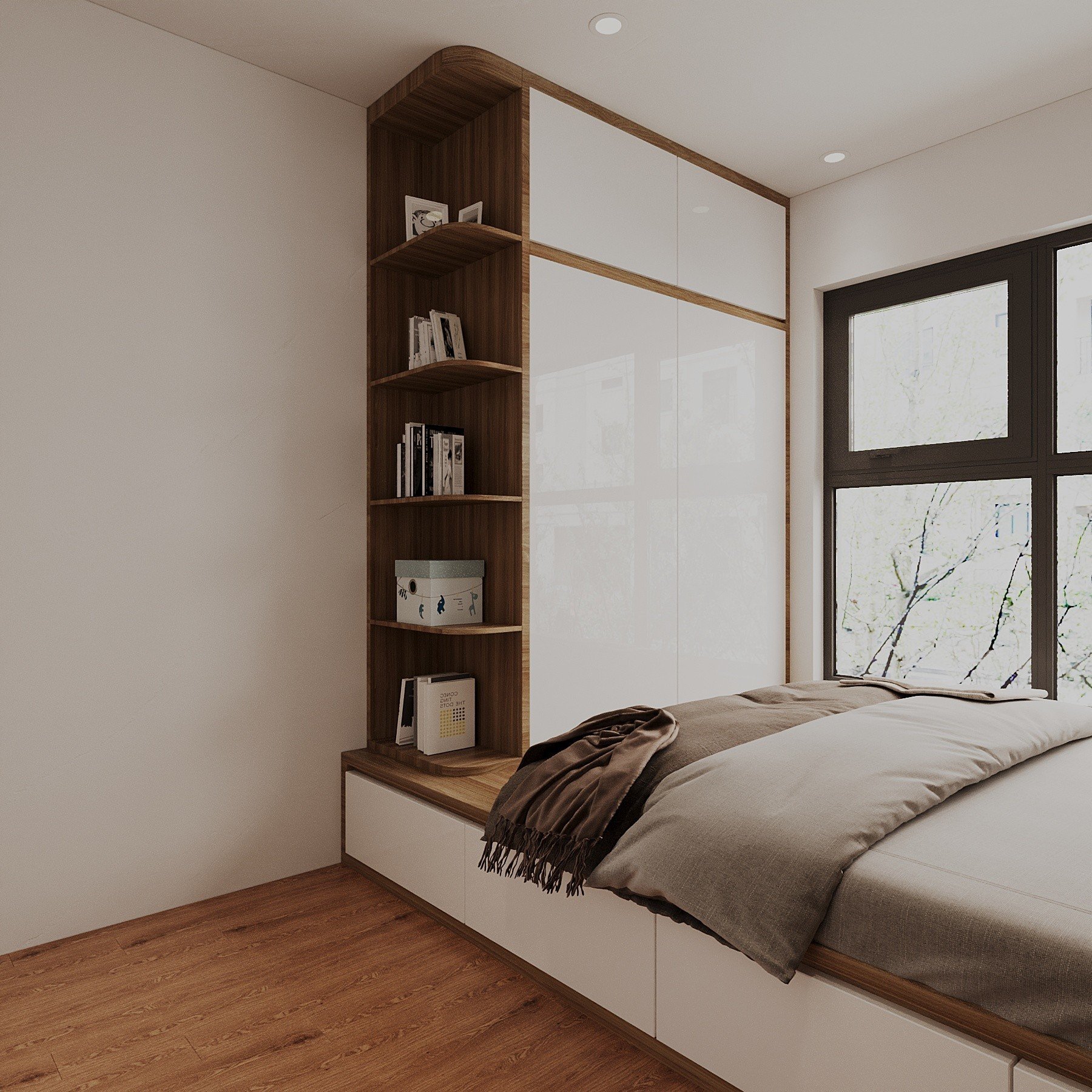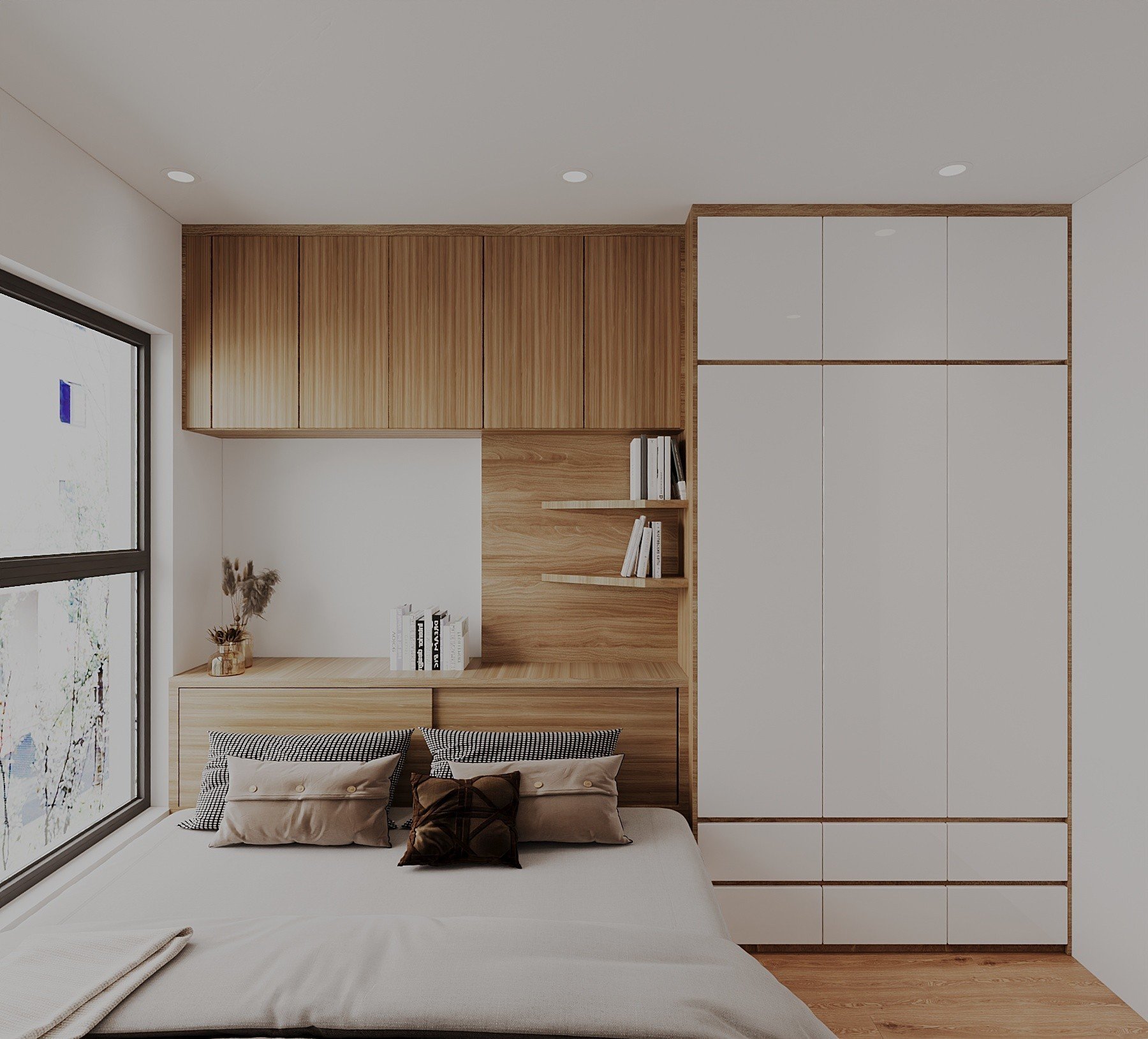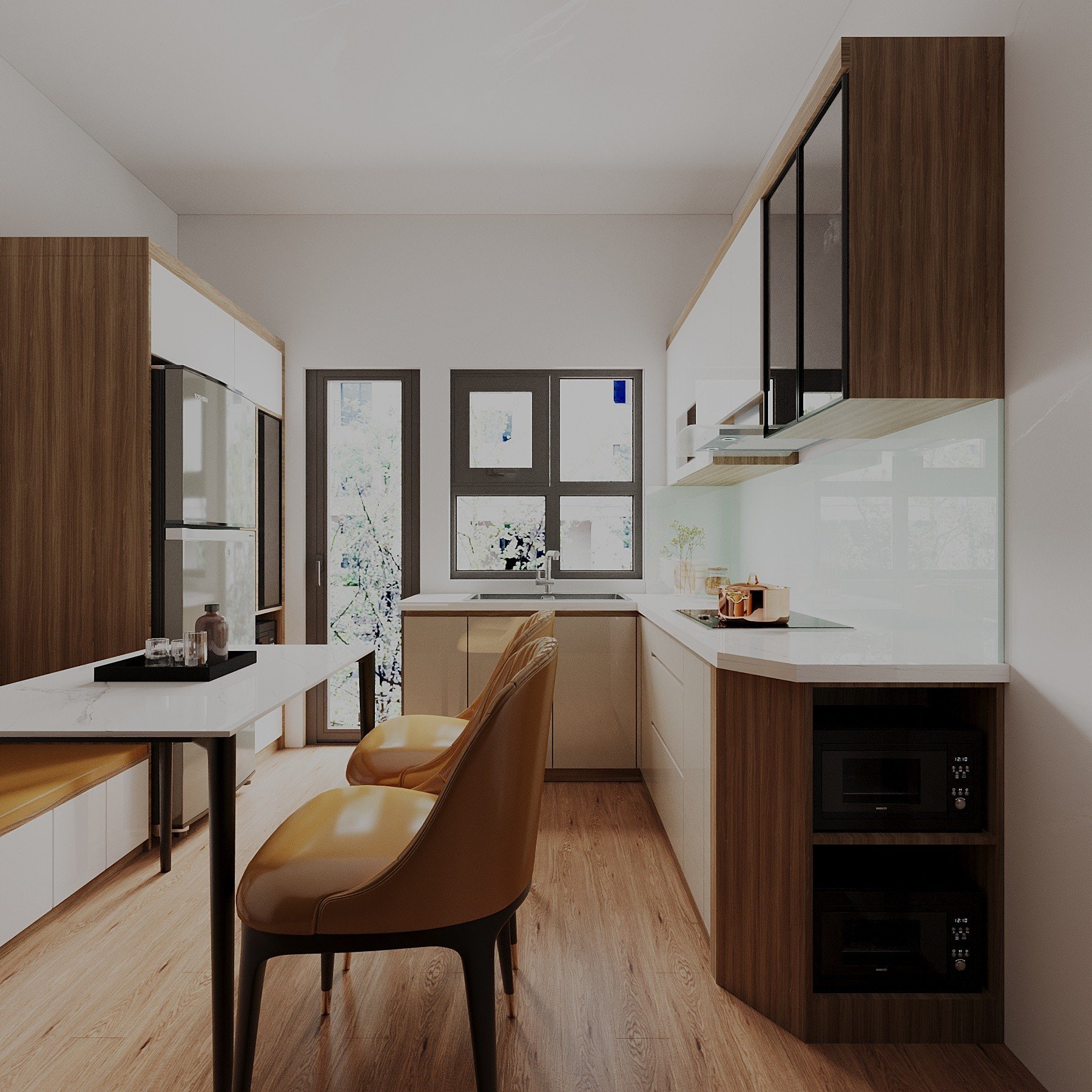 Tông màu chủ đạo: Vân Gỗ Kết Hợp Cánh Acrylic
