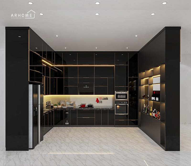 Màu đen được coi là biểu tượng của sự sang trọng và tinh tế, khiến cho không gian bếp trở nên đặc biệt hơn. Màu đen cũng có khả năng tạo điểm nhấn và tôn lên các chi tiết trong thiết kế, giúp cho hệ tủ bếp trở nên nổi bật và thu hút ánh nhìn ngay từ cái nhìn đầu tiên. Đồng thời, màu đen cũng rất dễ dàng để kết hợp với các gam màu khác, giúp cho không gian bếp trở nên đa dạng và phong phú hơn.