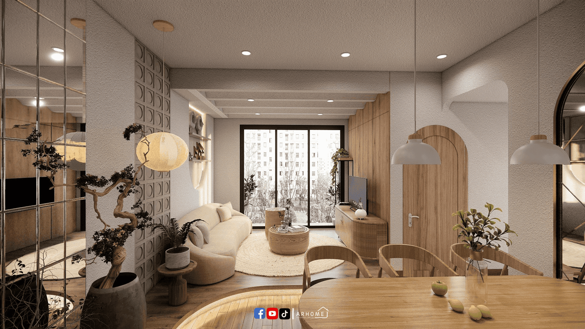 Với diện tích hạn chế việc thiết kế phòng khách chung nhỏ trở thành thử thách đối với nhiều gia đình. Một thiết kế trẻ trung năng động giúp ngôi nhà của bạn trở nên ấm cúng nhưng không kém phần sang trọng và hiện đại. Việc lựa chọn tone màu vân gỗ mang đến một không gian phòng khách hoàn toàn mới lạ và thú vị.