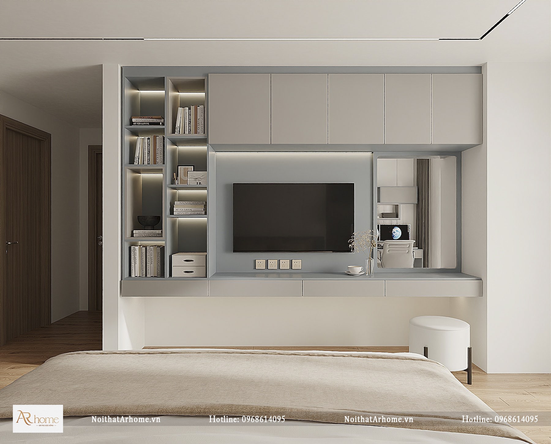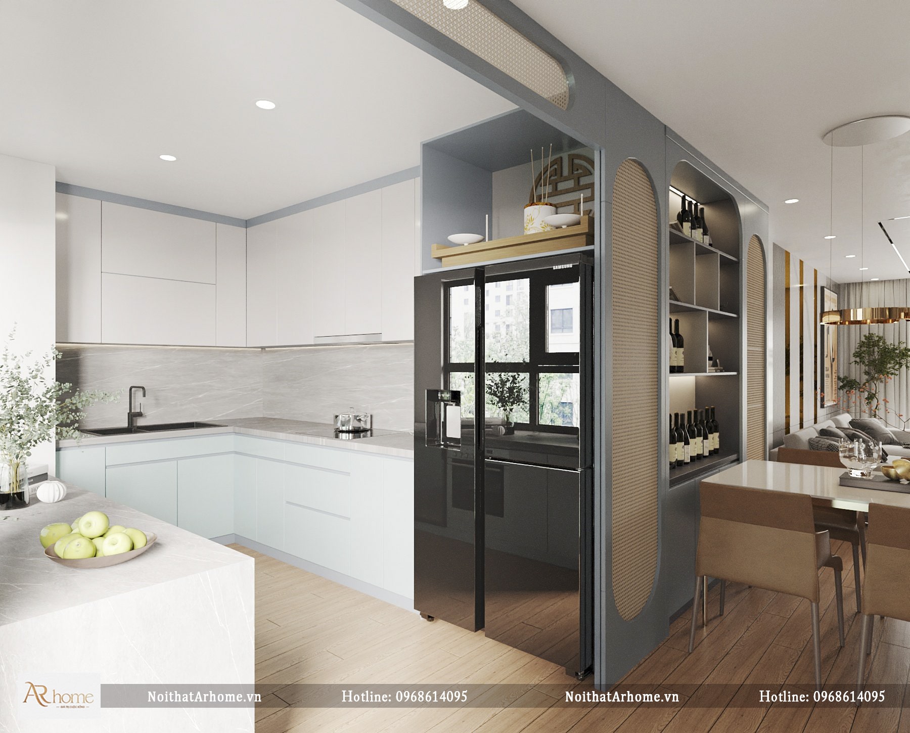 Nội thất căn hộ được thiết kế với các hệ tủ vuông phẳng xen lẫn với các tủ có vòm cong mềm mại tạo cảm giác hài hòa cho không gian nội thất vừa hiện đại thanh thoát vừa cách điệu, tinh tế và sang trọng. Đến với Nội Thất Arhome với phương châm làm việc chất lượng – uy tín đặt lên hàng đầu với sự gia công chi tiết tỉ mỉ đáp ứng tiêu chí tiện nghi và luôn cập nhật xu hướng. Sự tin tưởng, đồng hành của khách hàng là động lực để Nội Thất Arhome tiếp tục cố gắng và phát triển, mang đến cho khách hàng nhiều sự lựa chọn cũng như những sản phẩm chất lượng tốt nhất.
