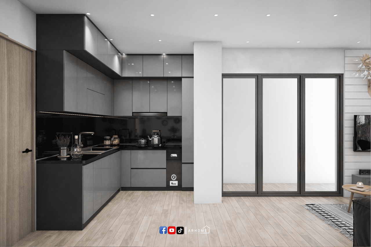 Khách hàng trẻ có những sở thích và thiết kế quá phá cách khi tin tưởng Arhome. Khám phá vẻ đẹp tinh tế của tủ bếp đen, với gỗ MDF Thái Lan chống ẩm kết hợp cánh Acrylic bóng gương. Thiết kế góc chữ L tối ưu hóa không gian, tạo điểm nhấn cho căn bếp và tối ưu công năng sử dụng. Với một thiết kế độc đáo phong cách nội thất này sẽ mang đến những điều hoàn toàn khác biệt và mới lạ không ngờ….