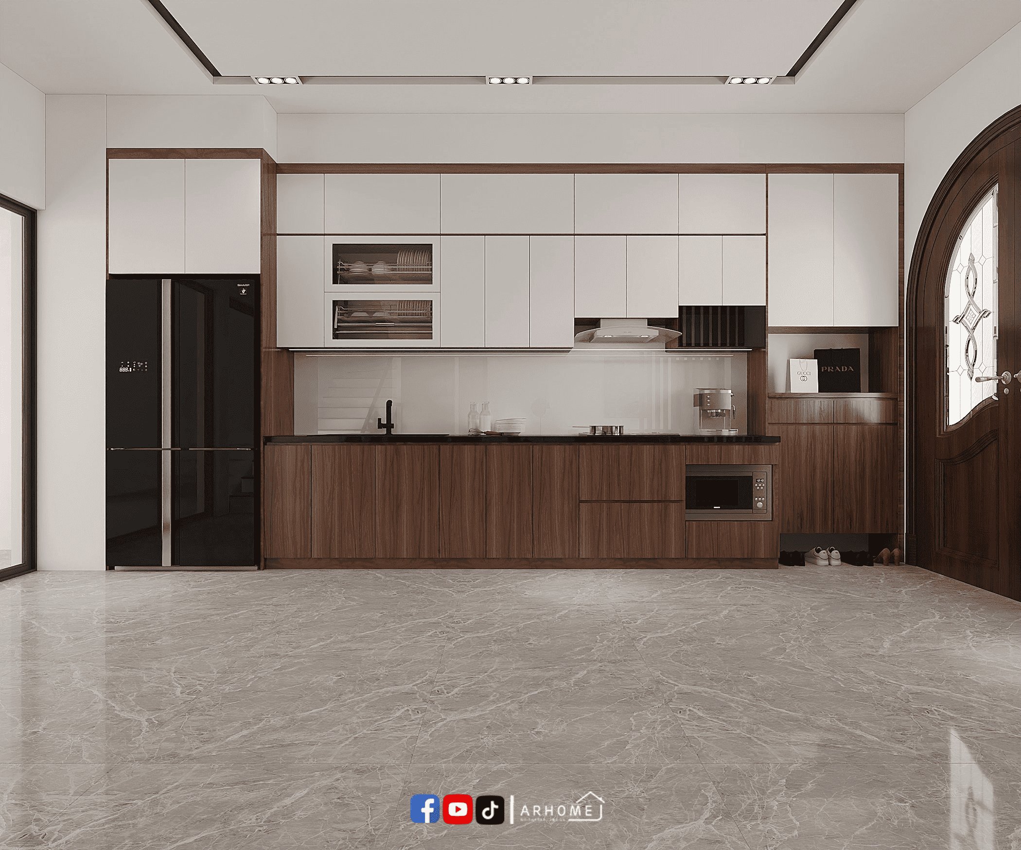 Sau khi hoàn thiện công trình thiết kế & thi công full căn nội thất chung cư thì Nội thất Arhome lại được khách hàng Bác Công tin tưởng và giao tiếp thiết kế thi công hoàn thiện nội thất nhà liền kề tại Vinhome OceanPark2. Hệ tủ bếp màu óc chó kết hợp màu trắng giúp đồng bộ nội thất chung của các hạng mục nội thất tổng thể. Arhome xin cảm ơn tới khách hàng Bác Công, đây cũng là một gợi ý gửi mọi người tham khảo nếu không gian bếp nhà bạn cũng vậy và mong muốn sở hữu một bộ tủ bếp thết kế này.