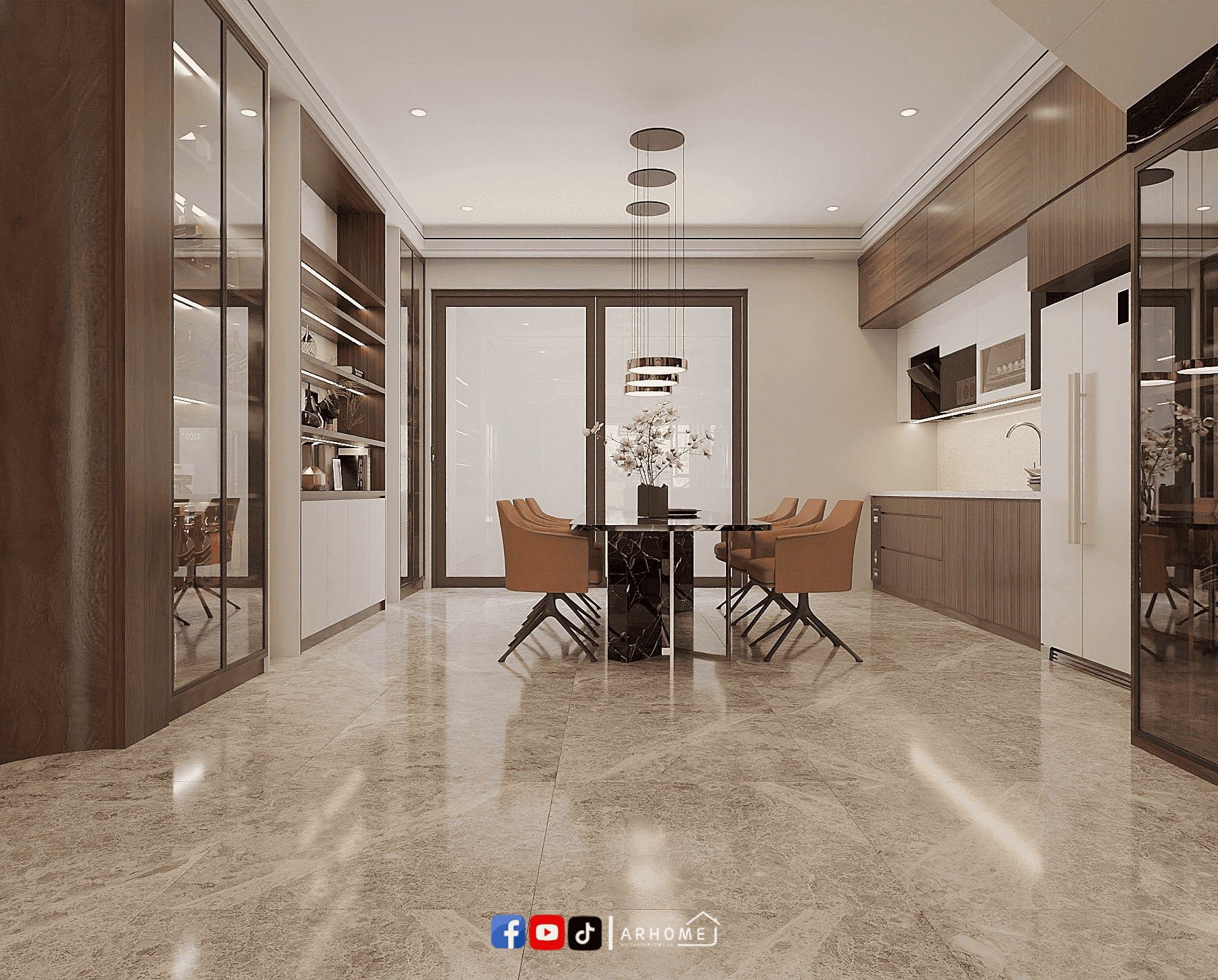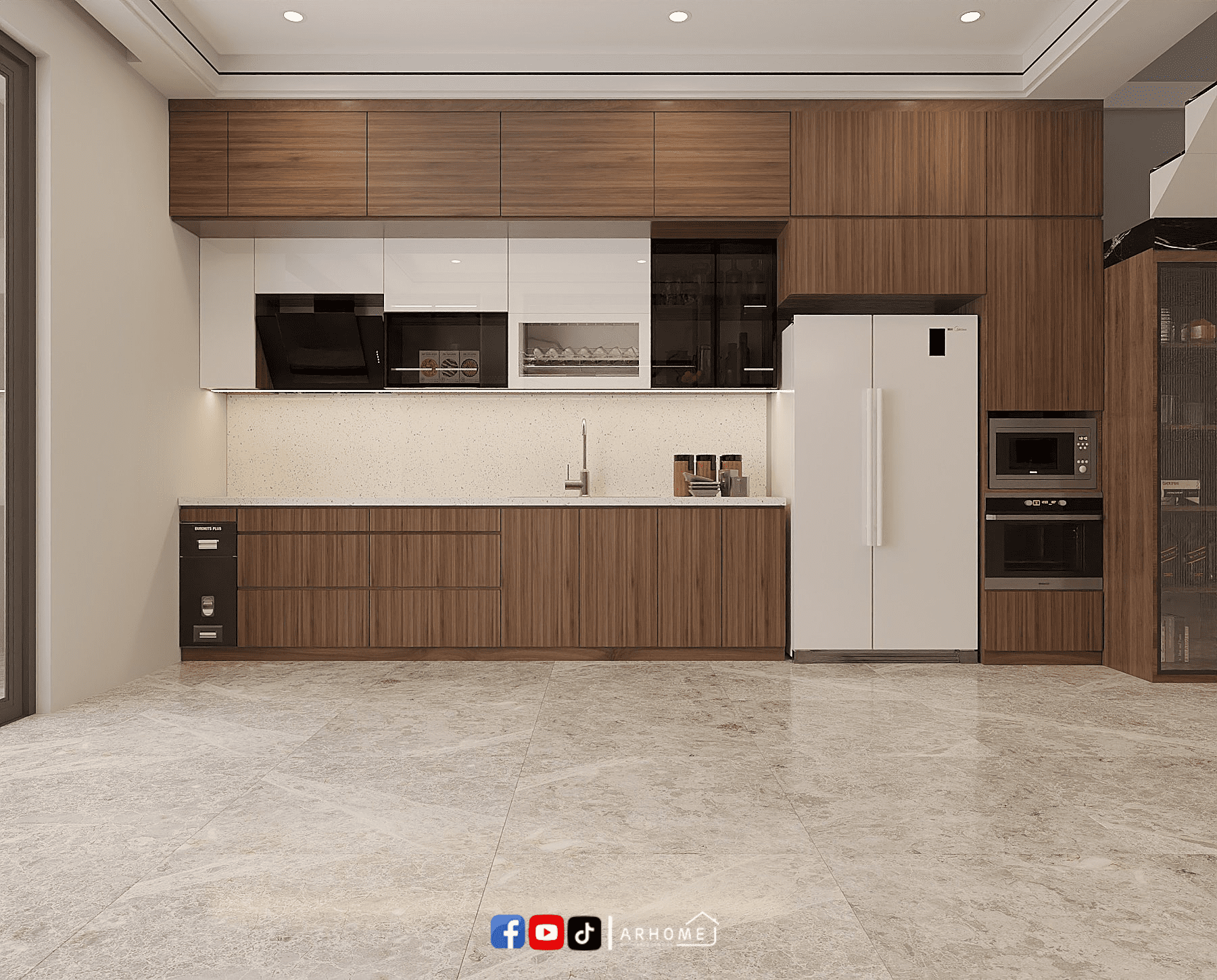 Với một "ℎ𝑒̣̂ 𝑡𝑢̉ 𝑏𝑒̂́𝑝 𝑐ℎ𝑢̛̃ 𝑖" thì mọi người sẽ lên ý tưởng thiết kế và thi công là gì? Với Tủ bếp Arhome, 𝐭𝐨̂́𝐢 𝐮̛𝐮 𝐜𝐨̂𝐧𝐠 𝐧𝐚̆𝐧𝐠 để khách hàng sử dụng là điều cốt lõi trước khi triển khai một công trình nào đó. Với khách hàng cô Toàn, cô muốn kết hợp các chất liệu với nhau để phù hợp công năng nhưng vẫn phải đảm bảo về tính thẩm mỹ cao cho không gian bếp liền phòng khách nhà mình.