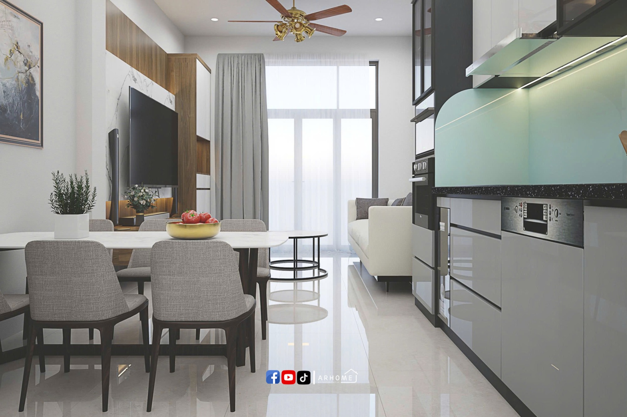 Không gian khách liền bếp, thiết kế hiện đại, tiện nghi hay chi phí hợp lý? Với phương châm thiết kế tối ưu công năng sử dụng của khách hàng, “𝑡𝑢̉ 𝑏𝑒̂́𝑝 𝑐ℎ𝑢̛̃ 𝐼” giúp tối ưu hóa không gian, mang đến sự gọn gàng và tiện nghi cho căn bếp của bạn. Các khu vực và đồ đạc được sắp xếp khoa học, thuận tiện cho việc nấu nướng. Với những ưu điểm vượt trội tủ bếp 𝐢𝐧𝐨𝐱 𝟑𝟎𝟒 kết hợp 𝐜𝐚́𝐧𝐡 𝐚𝐜𝐫𝐲𝐥𝐢𝐜 𝐜𝐨̂́𝐭 𝐧𝐡𝐮̛̣𝐚 chắc chắn sẽ mang đến cho bạn một không gian bếp tiện nghi và sang trọng. Tủ bếp Arhome sẽ ưu tiên sự phù hợp với công năng sử dụng của hộ gia đình. Mọi người cùng chờ đón công trình thực tế của Arhome nhé!