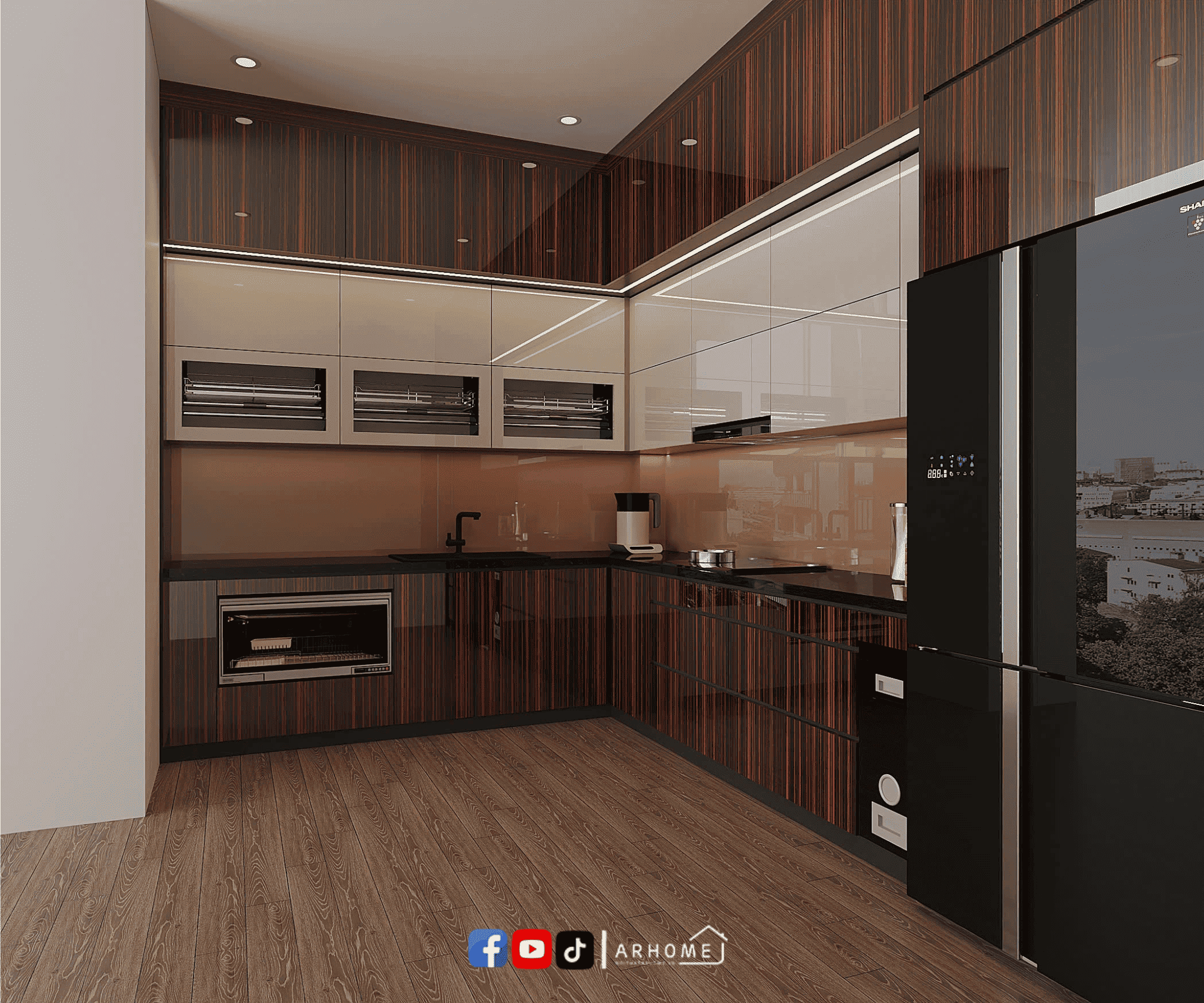 Thiết kế tủ bếp như thế nào để vừa tận dụng tối đa diện tích mà còn tối ưu công năng sử dụng? Hệ tủ bếp chữ L là một lựa chọn hoàn hảo cho chính căn bếp của bạn. Một thiết kế thông minh không những tối ưu diện tích mà còn biến không gian bếp trở nên rộng rãi, tạo ra một không gian nấu nướng hiện đại và tiện nghi. Với chất liệu khung thùng inox 304 kết hợp cánh Acrylic không chỉ bền bỉ mà còn tạo điểm nhấn sang trọng có căn bếp của gia đình. Hãy để Tủ bếp Arhome biến căn bếp của bạn trở thành điểm nhấn cho ngôi nhà của mình nhé!
